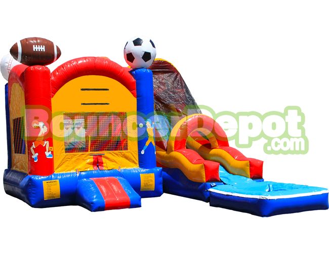 Give any party a winning edge with the Sport Arena Inflatable Combo Jumper with Pool — where sporty energy meets splashy fun. With a bounce zone built for active movement, dual slides for fast thrills, and a full-width pool at the base, this unit delivers it all in one dynamic setup. Kids make their entrance via a ramp and flap door, bouncing inside a mesh‑lined chamber that lets air circulate freely and keeps everything visible to grownups. From there, they climb to one of two slide exits — perfect for dry plunges or cooling off in the pool when it’s warm outside. Made from durable commercial-grade vinyl and stitched for strength, this combo is ideal for birthday celebrations, school field days, church fairs, neighborhood block parties — or any rental fleet that wants action with versatility.